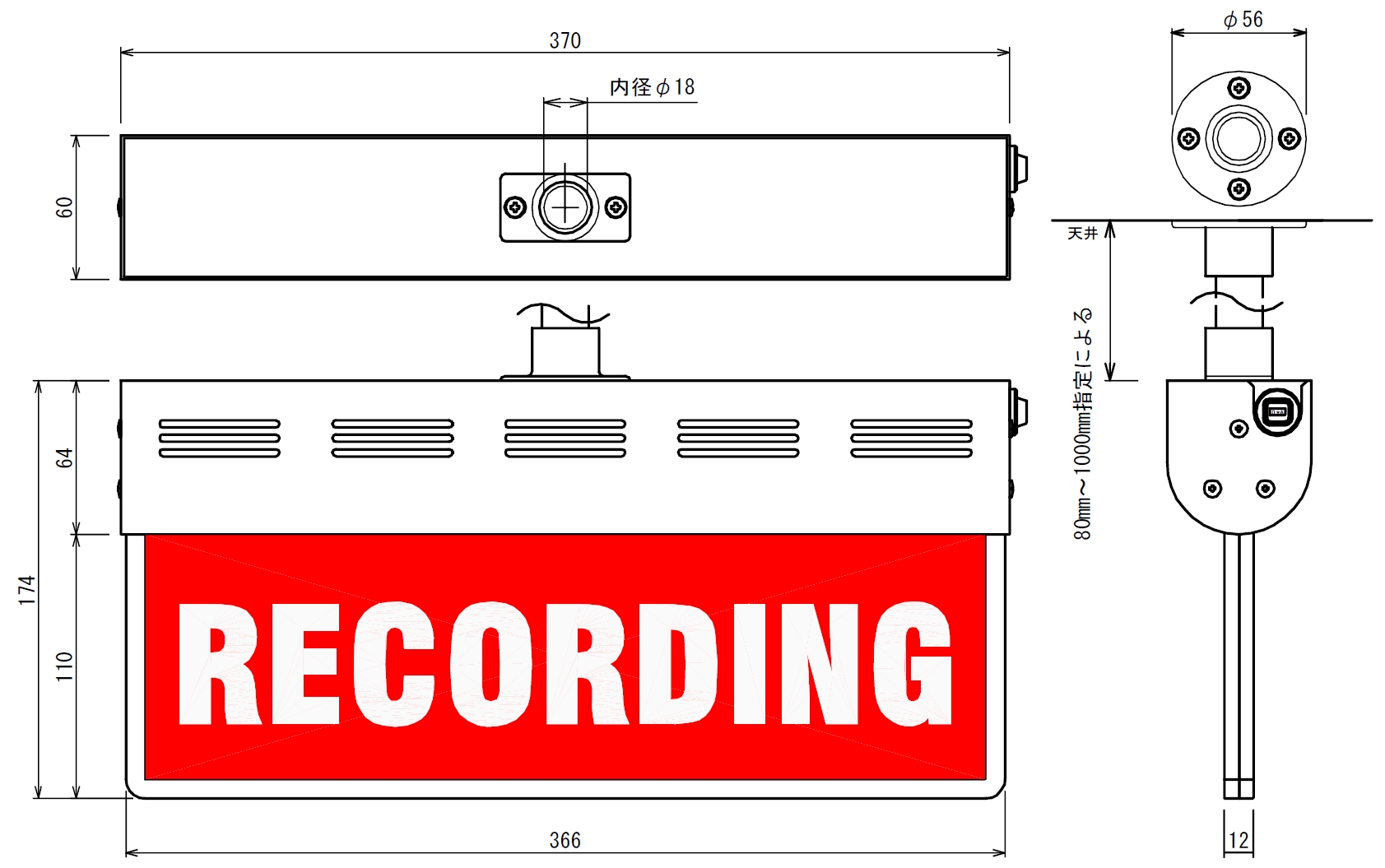 本体外形 H174mm×W370mm×D60mm(突起部含まず)